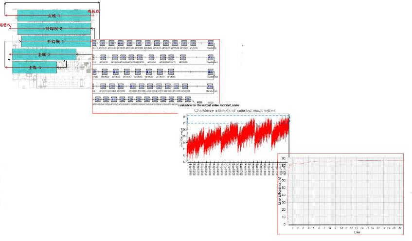 運(yùn)用Plant Simulation物流仿真模擬軟件對(duì)產(chǎn)線建模仿真,調(diào)整緩存BUFFER容量或工藝瓶頸分析,從而實(shí)現(xiàn)產(chǎn)線的開(kāi)通率和穩(wěn)定節(jié)拍。